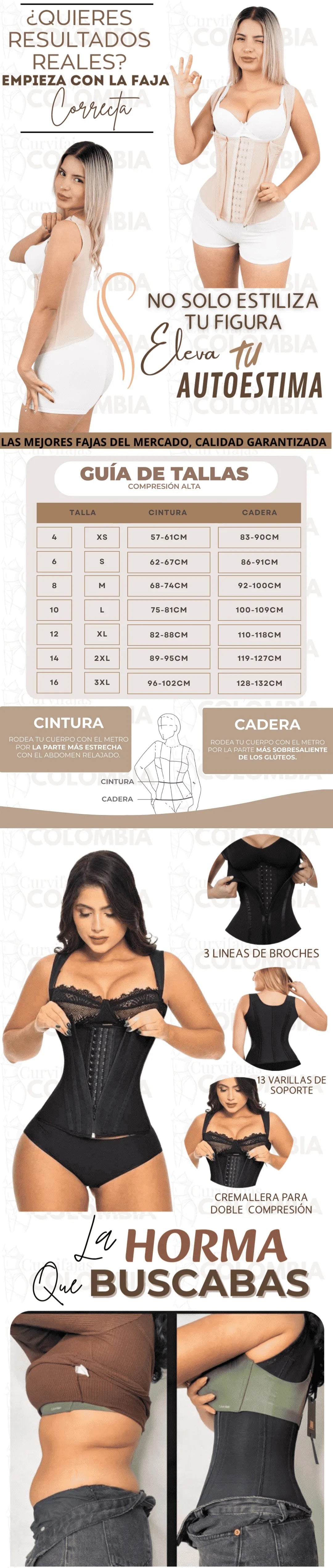 Solo necesitas tu contorno de cintura y cadera para elegir la talla correcta. Si tienes dudas, escríbenos por WhatsApp y te ayudamos a escoger la ideal para ti.