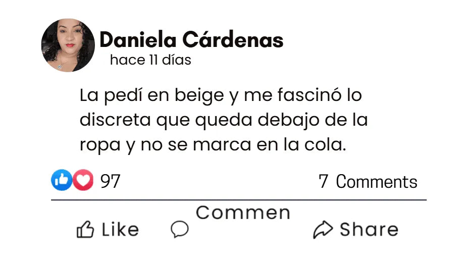 Está elaborada en telas suaves, frescas y transpirables, pensadas para brindar una sensación de firmeza con comodidad. su diseño flexible permite moverte libremente y usarla durante diferentes actividades —en casa, en el trabajo o en eventos especiales— manteniendo la practicidad y el confort.