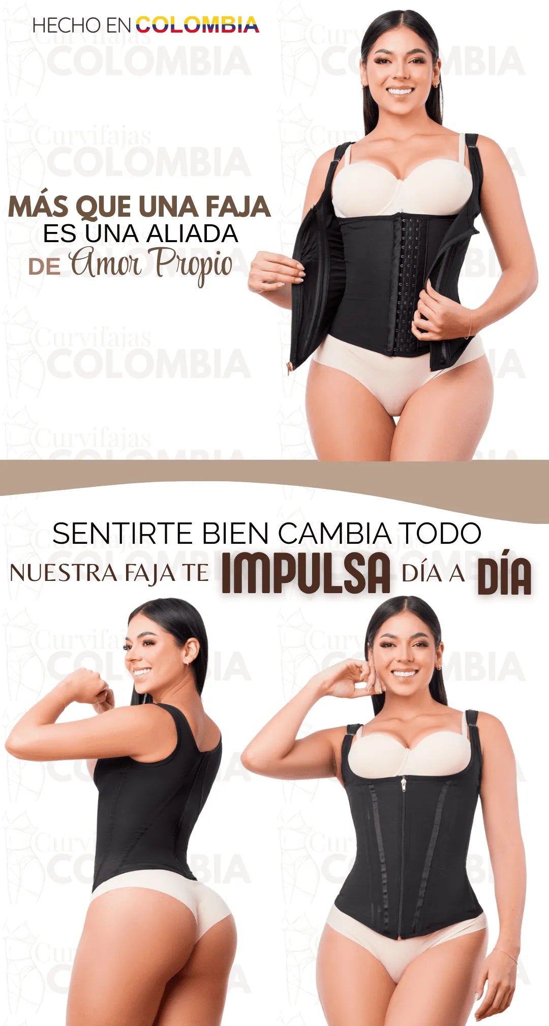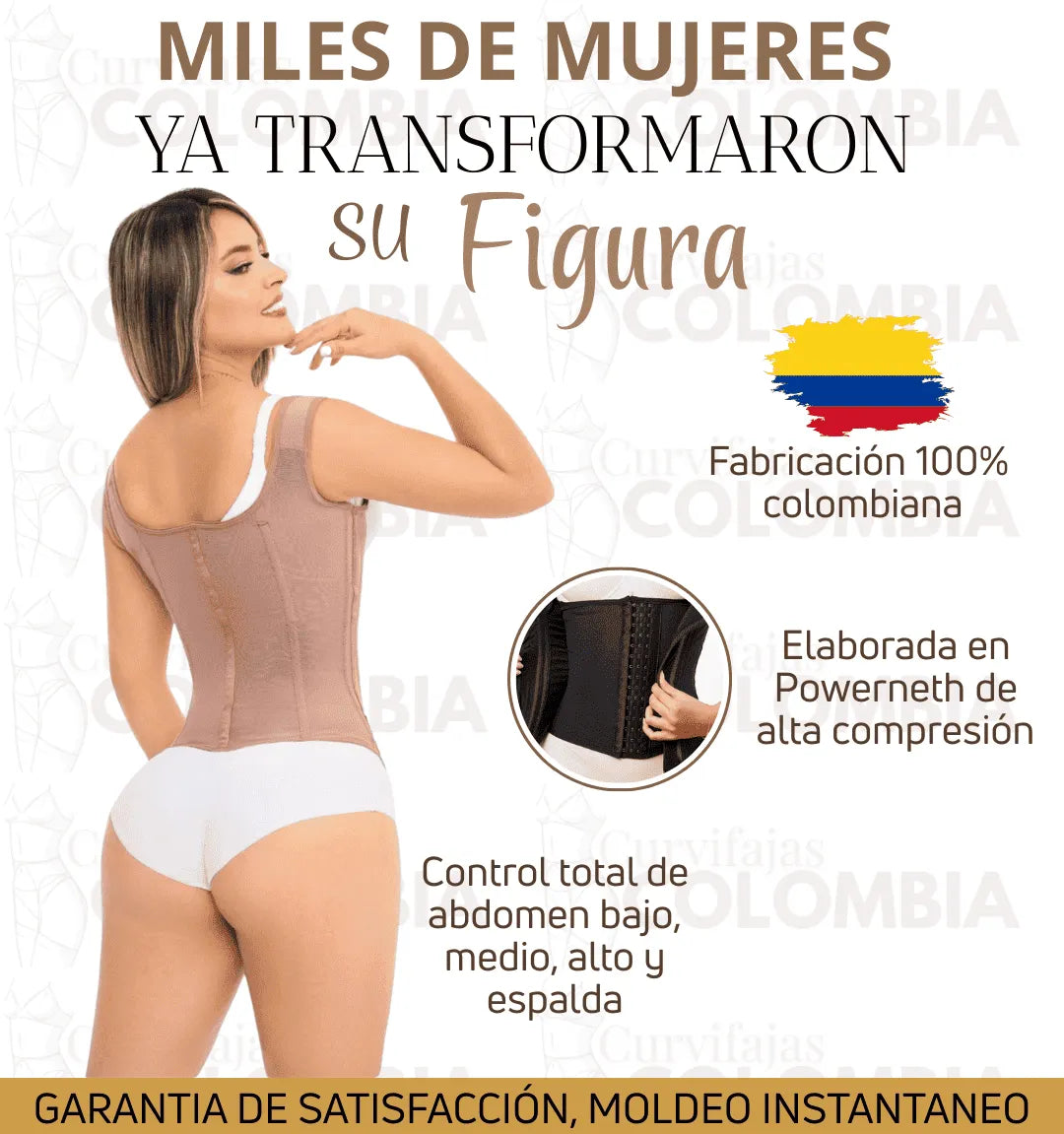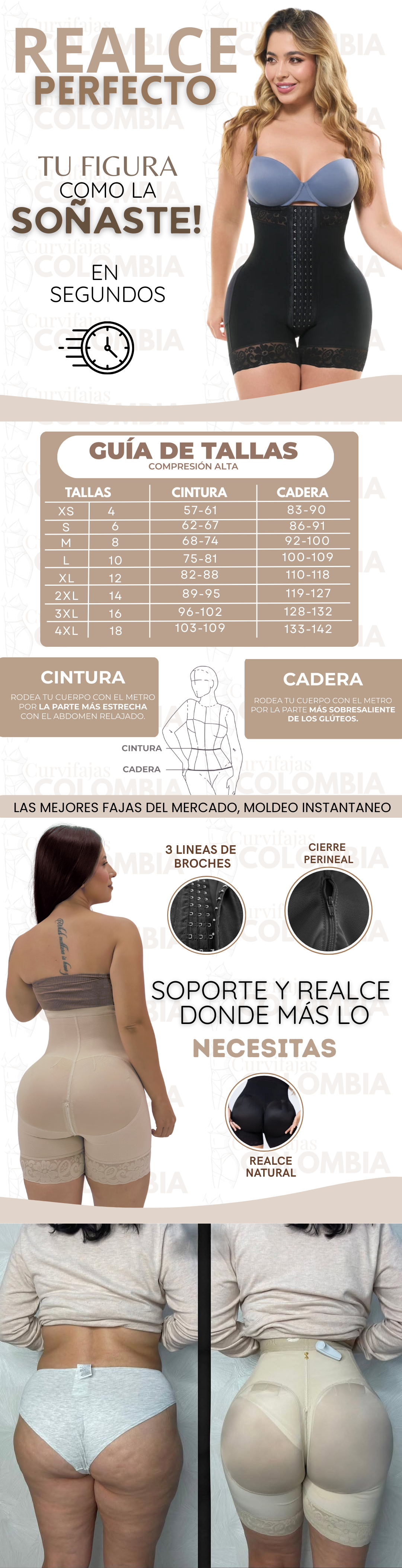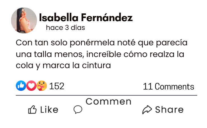 Solo necesitas tu contorno de cintura y cadera para elegir la talla correcta. Si tienes dudas, escríbenos por WhatsApp y te ayudamos a escoger la ideal para ti.